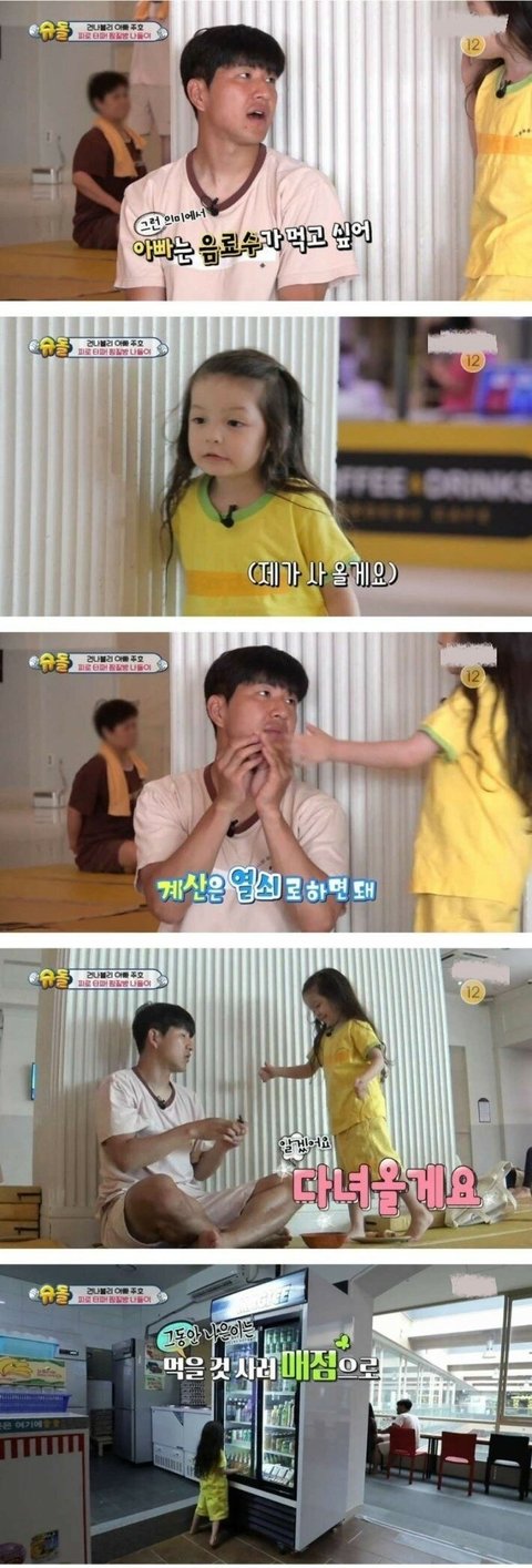 저긴 10만원 쯤은 별 타격없을 연봉 ╋ 어차피 애들 덕분에 출연료 받는데 애가 자기 돈으로 사준 거나 마찬가지 = 별로 화도 안 나고 기특하기만 할 듯