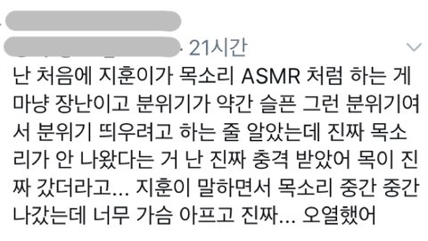 아픈 목소리 들려주고 싶지 않다며 ASMR 버전으로 엔딩 멘트를 끝마쳤음.