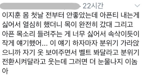 근데 조금만 들어도 목소리 심각한 거 확 느껴짐.