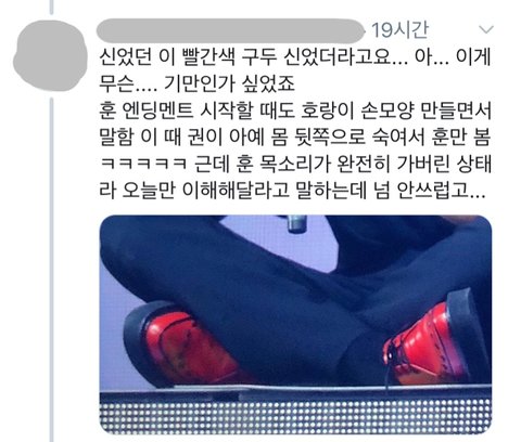 무대할 때도 많이 힘들어 보였다고 함.