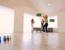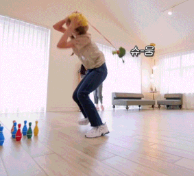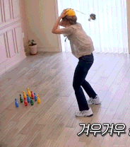 코끼리코를 하고 상모 볼링을 해서 정하기로 함