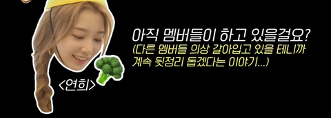 아직 멤버들이 하고 있을걸요?라고 대답한 연희