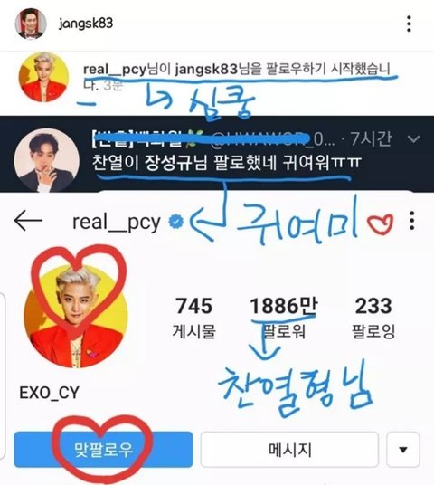 찬열이가 먼저 선팔했다고 엄청 좋아하심 ㅋㅋㅋㅋㅋ