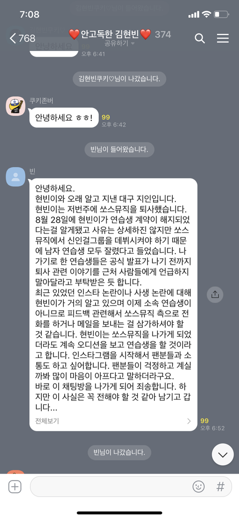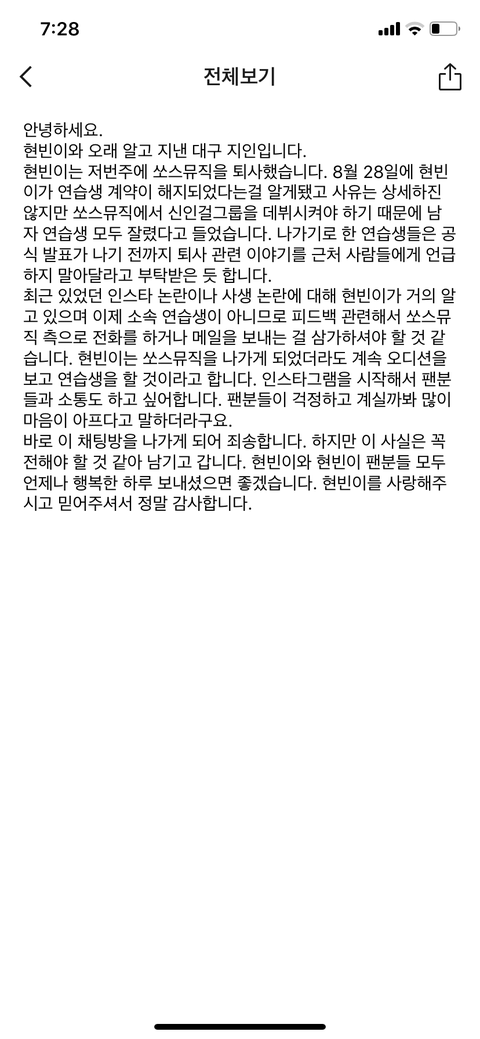 지인이라는사람이 아까 말하고감... 그래도 현빈이같은 실력에 그정도얼굴이면 데려가려고하겠지..? 진짜 일잘하는 소속사갔으면좋겠다 쏘스뮤직 그냥 내가 지금까지 본소속사중에 일제일안해 못하는것도아니고 안해ㅅㅂ