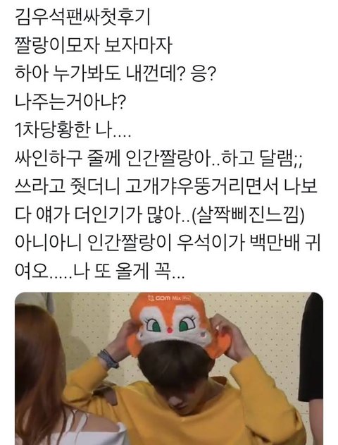 팬 분이 팬사인회에서 짤랑이 모자 주니까,