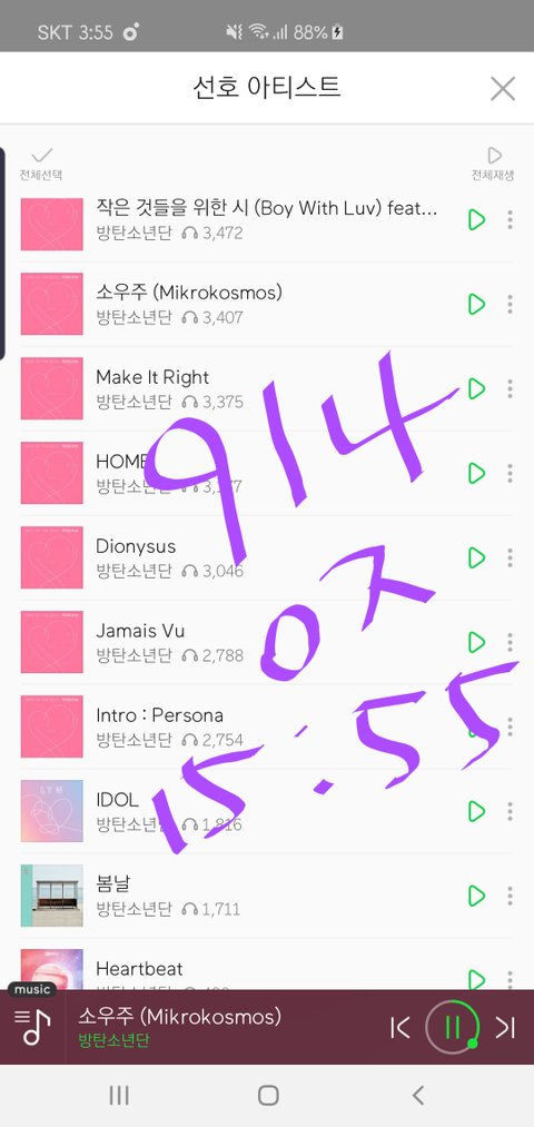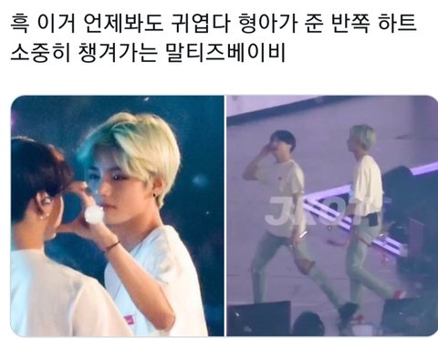 여섯째 형아가 준 반쪽하트 소듕히 아미들에게 전달 중