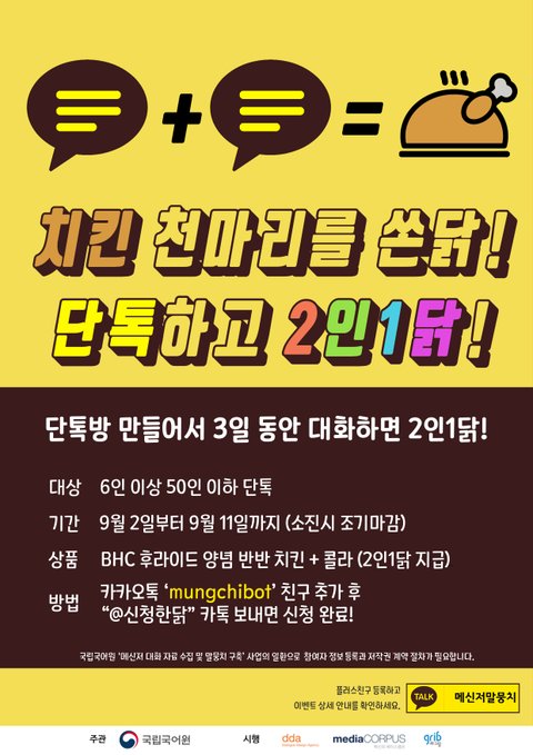치킨도 먹고 우리말 인공지능 산업 발전에도 기여하는 이벤트랍니다!