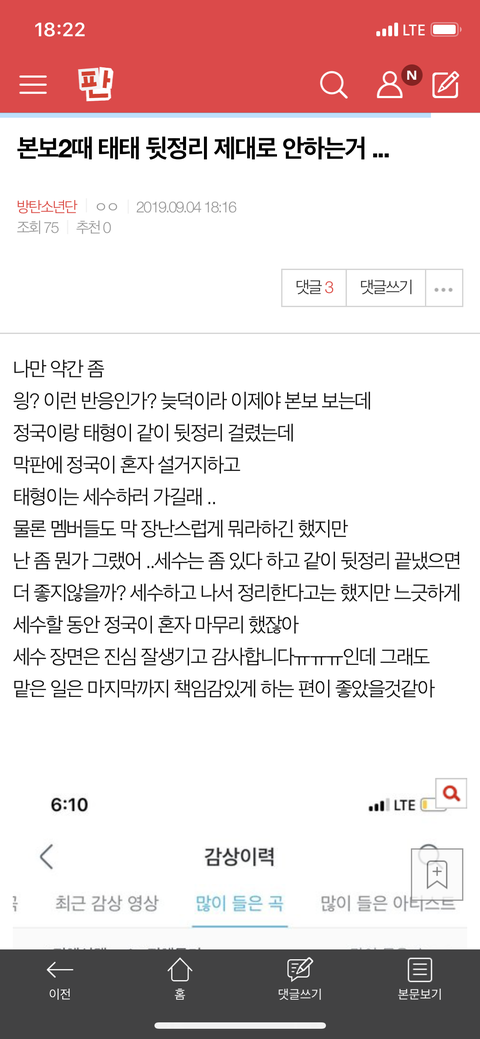 본보2때 태태 뒷정리 제대로 안하는거 ...