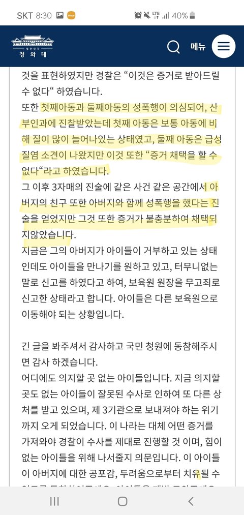 청원 다채우지 못하더라도 최소한 공론화라도 됐음 좋겠습니다
