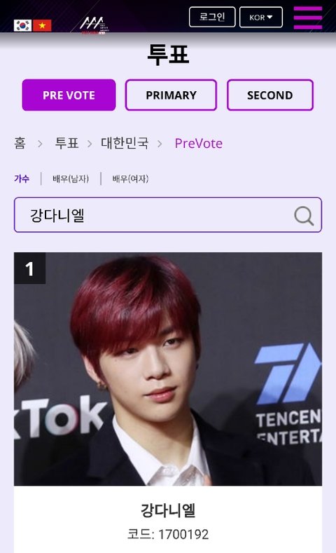 ⚡우측 상단줄3개-투표-좋아하는 가수'강다니엘' 선택 투표)