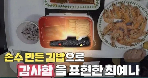 그리고 가족들과의 식사 자리에 손수 만든 김밥을 싸 간 예나