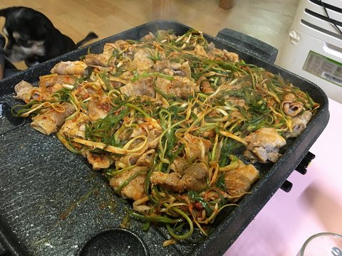 사촌동생이 놀러와서 대패삼겹 준비하고, 김치찌개 끓였어요.
