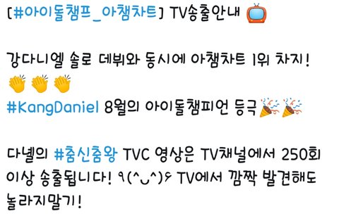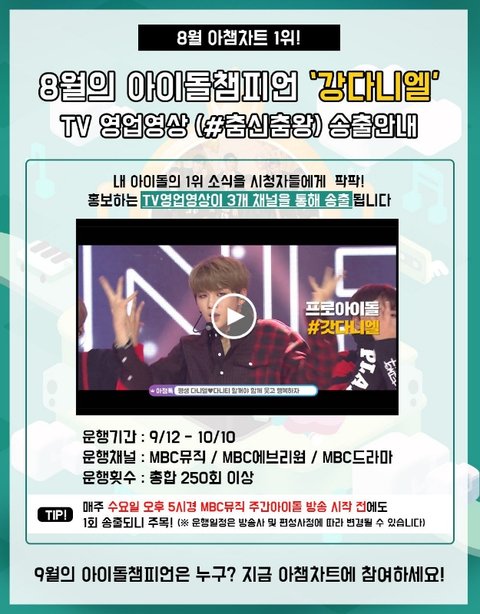 아챔차트 1위 춤신춤왕 강다니엘 TVC영상 송출안내