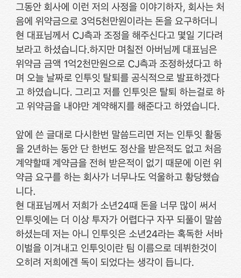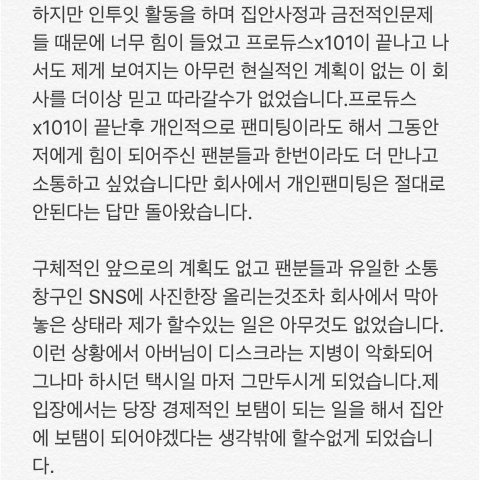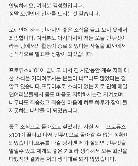 프듀X 김성현 인투잇 탈퇴 관련 입장문