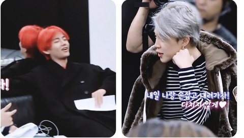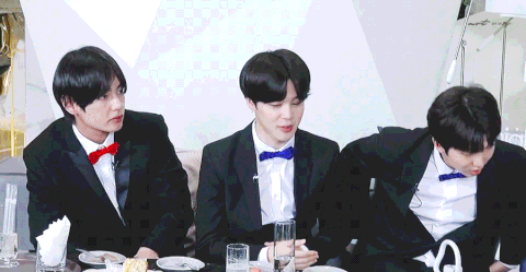 지민 : 아따 리허설때는 긴장하더만 참 잘하네! 끼가 넘쳐 임마.. 친구를 잘 뒀네 이제 우리 뷔가 돈 벌어 주는거야? ㅎㅎㅎ