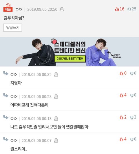 누가 김우석인줄 알았다는 댓글이 달렸는데..