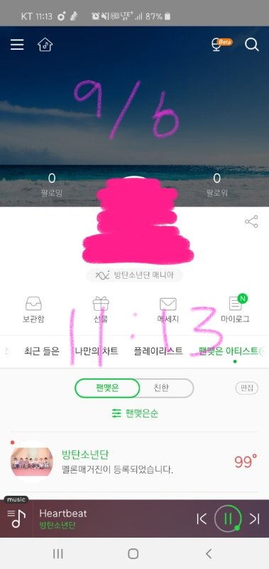 내가 가지고 있는건 겜 오에스티 발매 이후 리스트이긴 한데 혹시 최신 스밍리스트 가지고 있는 이삐 있어? 요즘 스밍 순위 많이 떨어졌던데 이런것도 공지에 있으면 좋겠다