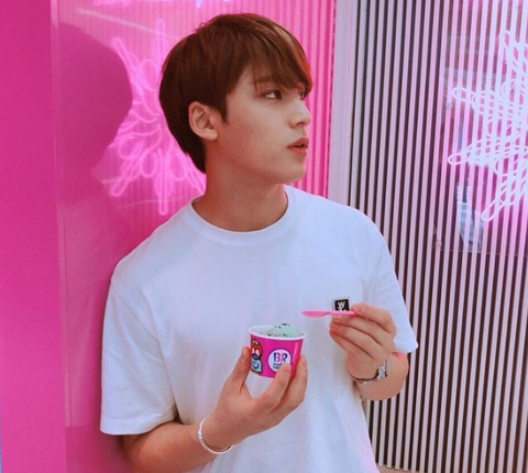 민규 역시 민트 초코 아이스크림을 먹는 사진을 올리며 민트 초코파임을 알렸다.