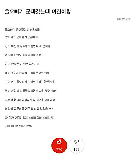 오빠 여친이 군대 간 오빠한테 보낸 사진