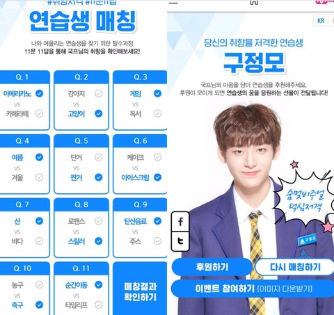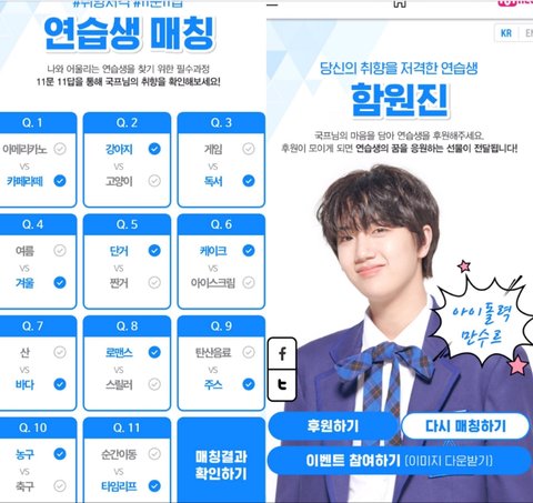 프듀 때 연습생 매칭?인데 얘네 진짜 겹치는 거 하나도 없음ㅋㅋㅋㅋ 취향이 정반대야ㄹㅇ