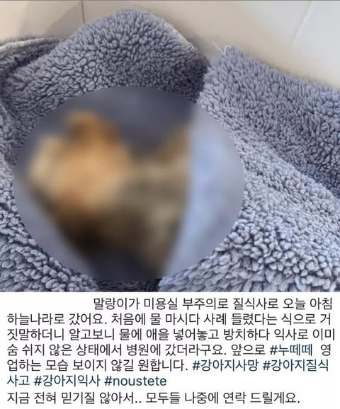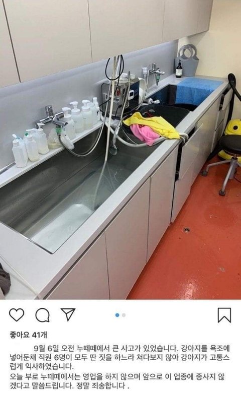 트위터에서 방금 본건데 예약 잡기 힘들정도로 겁나 유명한 애견샵인데 직원들이 강아지 욕조에 넣어두고 딴짓하다가 강아지가 익사했대.. 진짜 충격이다