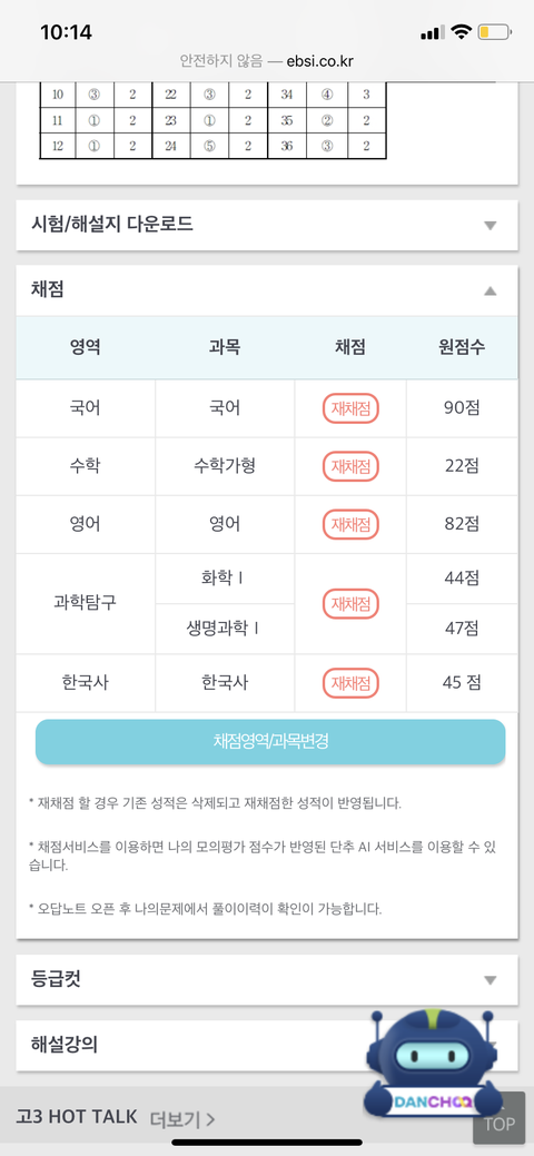 예상 등급컷으로 하면