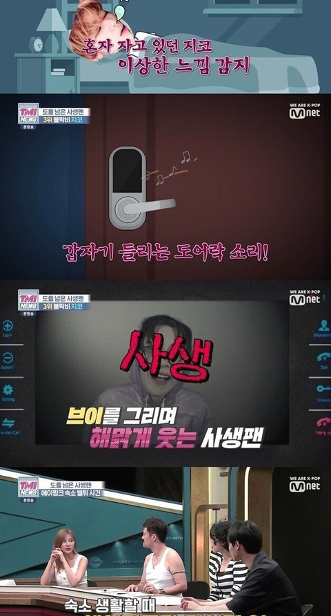 세븐틴 작년 앵콜 콘서트 끝나고 사생들이 회식장소랑 숙소까지 따라붙었는데 매니저들이 눈치 채고 일부러 빙빙 돌아서 갔는데도 숙소까지 따라오니까 결국엔 매니저들이랑 그날 콘서트 도중에 어깨 탈골 됐었던 호시가 직접 내려서 사생들 처단하려고 했었음 더 놀라운 건 이 사생들 다 세븐틴 판에선 다 알만한 홈마들이었고 자기들 그런 적 없다고 그날 카드 내역까지 조작해서 증거라고 들고옴