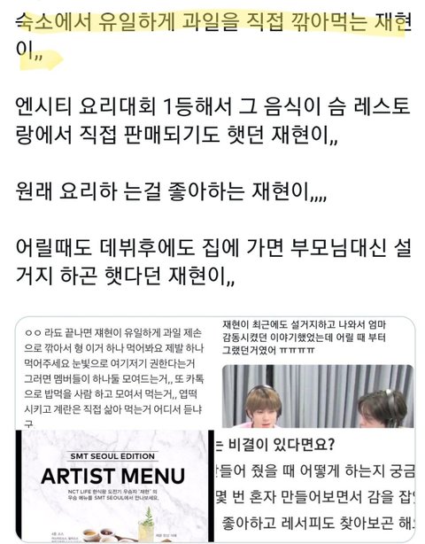 얘가 수납멤버는 아니지않나? 커버도 뮤비수준으로 찍어주는데? 커버영상 자체가 없는 멤버가 대부분이고 이정도 퀄로 커버 찍어주는게 얘밖에 없잖아ㅋ얼마전엔 ost도 내줬더만ㅋㅋ엔시티에서 태용 마크 도영 재현 이렇게 제일 미는게 보임 개인팬수도 얘가 젤 많고 팬눈엔 이정도 밀어주는것도 부족해 보이는건 알겠는데 진짜 수납은 정우 태일 같은 애들이지 재현은 절대 아니라고 봄 요즘 정우 호감가서 찾아보고 있는데 뭐가 없음ㅋㅋ