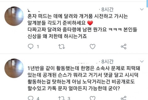설마 아직 저 트윗 아직도 삭제안했나 해서 서치해봤는데 몇개는 삭제되고 트윗 몇개는 그대로 있음ㅋㅋㅋㅋ 궁금한 애들은 트윗 내용 서치해봐라