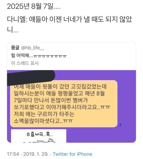 근데 그 약속을 열애설 터진 강다니엘 생각해서 안 미뤘다고 워너원 멤버들을 강다니엘 생각은 ㅈ도 안하는 배려없는 애들로 만들어버리기ㅋㅋㅋ