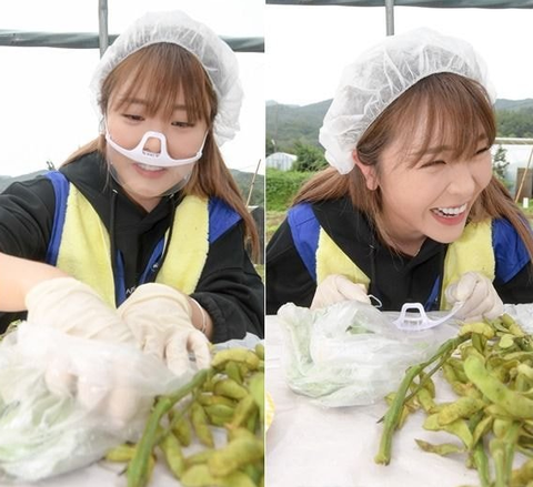 홍진영이 마스크를 거꾸로 쓴 이유는........