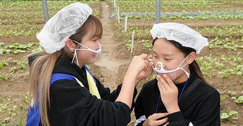 옆에 있는 학생에게도 마스크를 끼워주는 홍진영