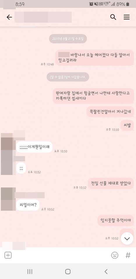 더 웃긴건 천일 당일날 그년한테 1000일 축하해요! 라고 카톡옴ㅋ 싸이코패스인줄