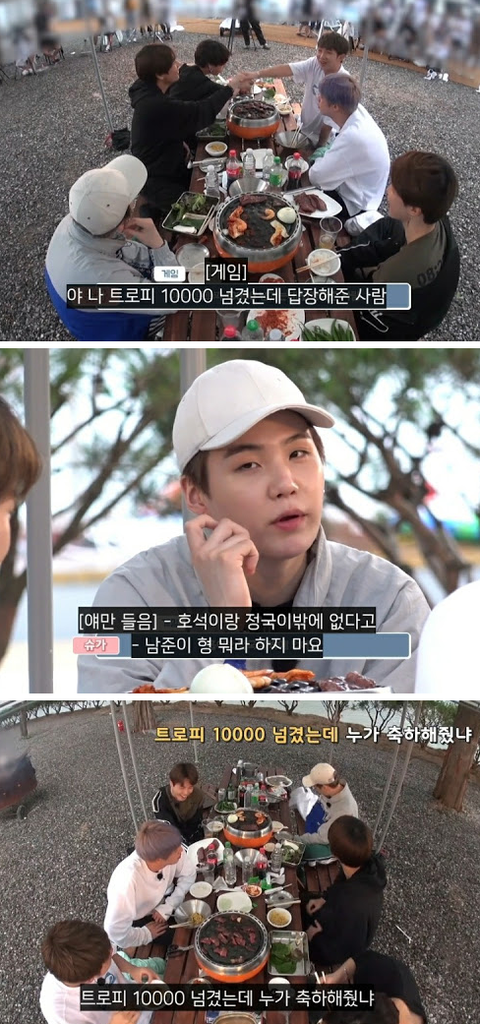 트로피 만 개 넘었는데 멤버들이 축하 안 해줘서 서운했던 윤기 ㅋㅋㅋㅋㅋㅋ