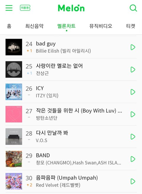 유투브 조회수 화력 아니라길래 멜론 차트 가져왔어