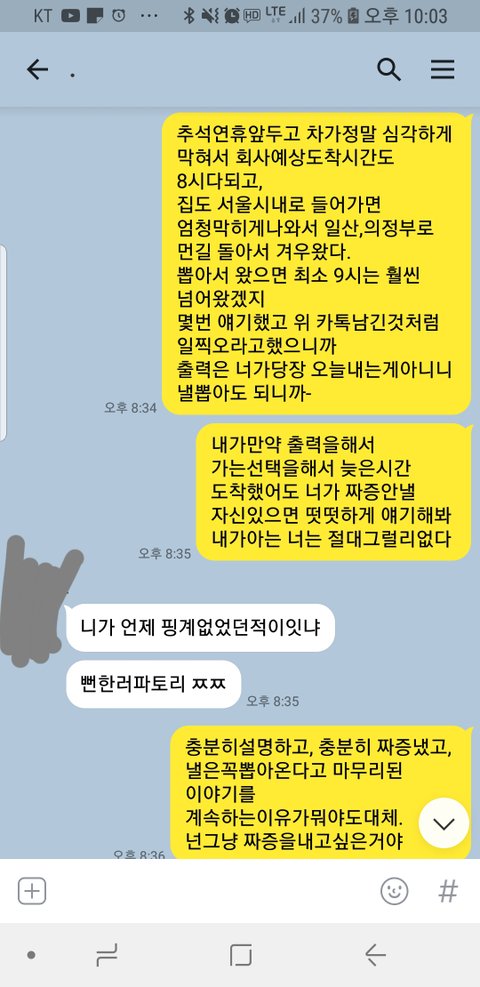 사건과 관계없는 추론이 개입될 여지가 있어 그간 다툼의 패턴이나 다른 정보는 배제하고 써보겠습니다.