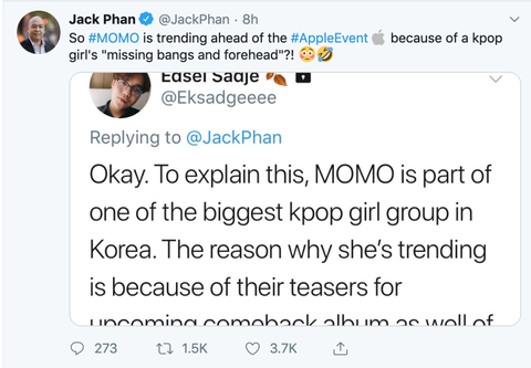 모모가 뭐임?? 그 KPOP 걸그룹이 애플 이벤트를 이긴다고??? 혼란스럽다...