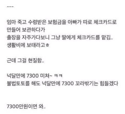 와... 미친 나같으면 저 돈 못 쓸것 같음ㅠㅠ 생각만해도 속상한데 어지간히 미친년이네