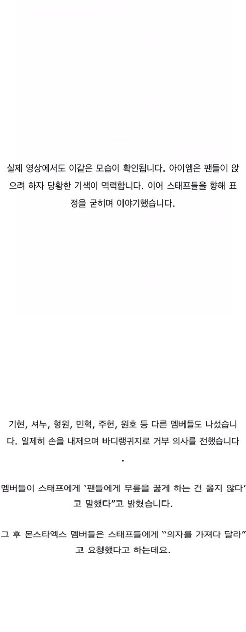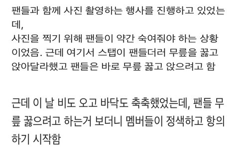 팬들 무릎 꿇게 하자 정색하며 항의하는 아이돌