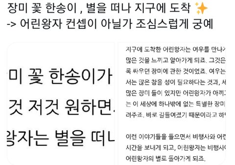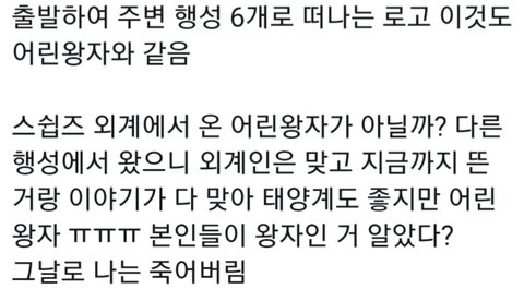 지금 온갖 추측이 난무하는데 제일 가능성 높은 게 어린 왕자랑 태양계임.