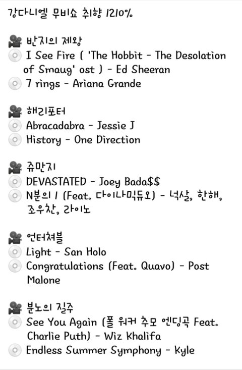 9월12일 강다니엘쇼 추천영화+선곡리스트