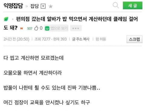 편의점 갔는데 알바가 밥 먹으면서 계산하던데 클레임 걸어도 돼?