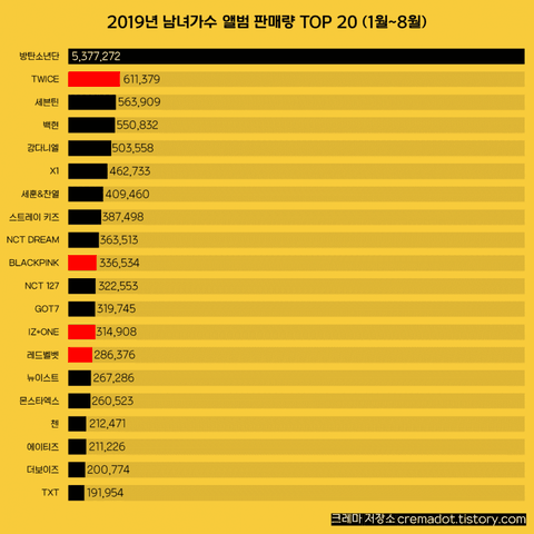 2019년 남녀 아티스트 앨범 판매량
