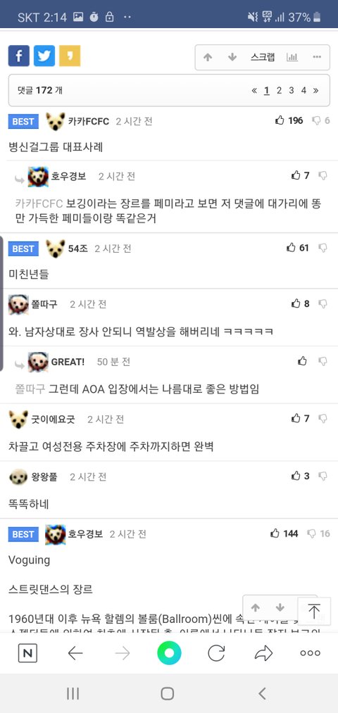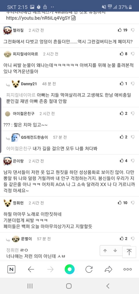 와 미친건가 도를 넘네;; ㅂㅅ,ㅁㅊㄴ 등 왜 저런 저급한 말들을 aoa가 들어야 하는거야...? 에오에는 즈그들 이름도 모르겠다 ㅋㅋㅋㅋ