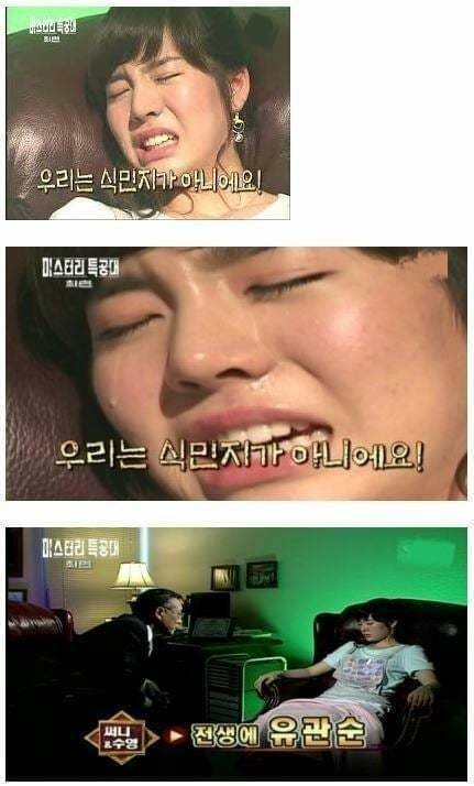 이거 그거임 최면은 조작이가능할까 실험하는건 소녀시대에 유관순만 4명 나와서 조작 가능하다고 나옴