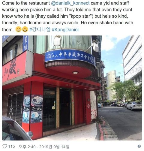 어제 녜리 저녁 먹으러 간 훠궈집 직원왈 그는 친절하고 상냥하고 잘생겼고 계속 웃음짓고 있었고 악수도 했대 부럽 나도 강다니엘 보고싶고 악수하고싶오 ( ˃̣̣̥᷄⌓˂̣̣̥᷅ )
