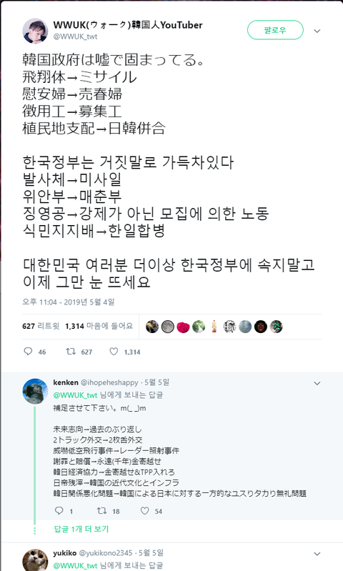 한국은 전부 거짓이고 말도안되는 극단적인 혐한발언을 일삼는다