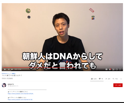 해석 : '조선인은 DNA 부터 글러먹었다' 와 같은 발언등의 영상에도