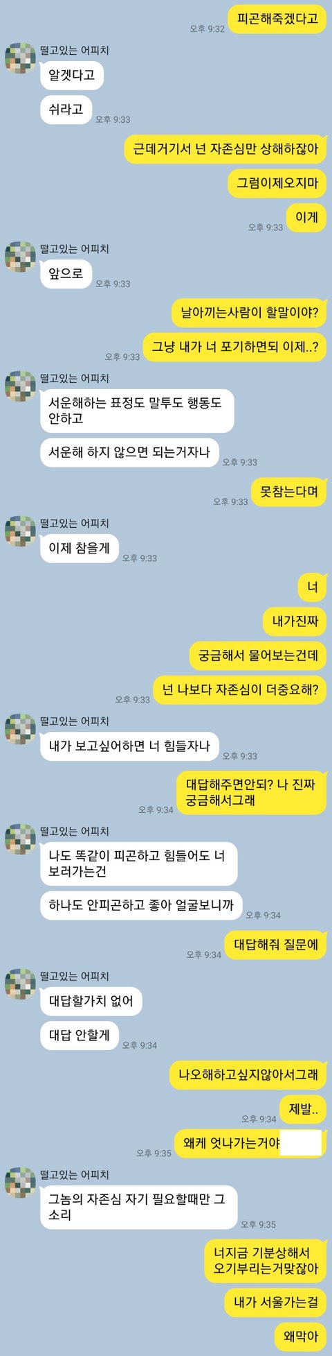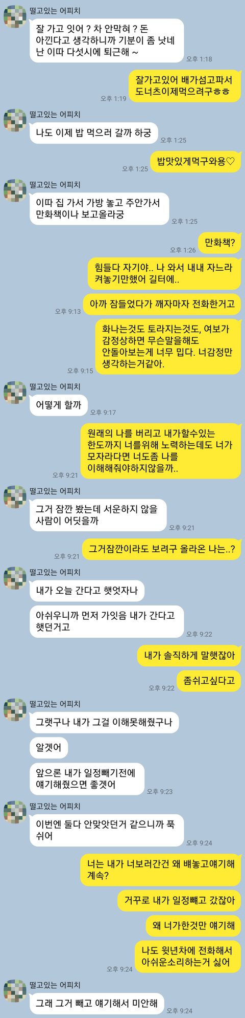 생각해보니 너무 서운해서 전화일부러 안받았다는 말에 제가 카톡 보낸걸로 시작된겁니다.