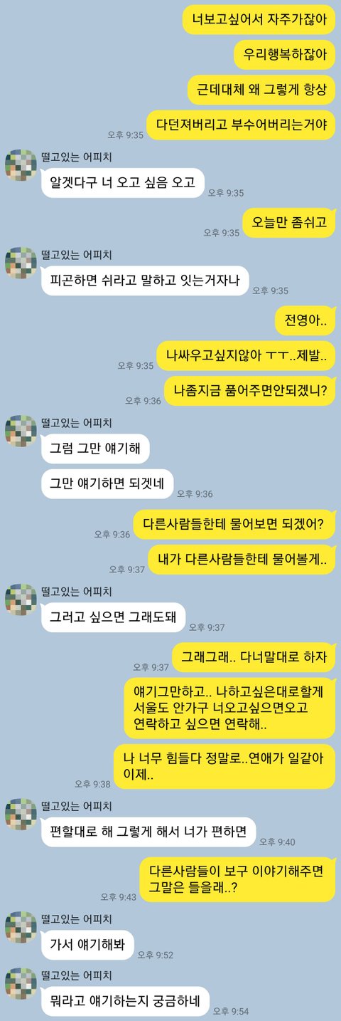 9개월간 꽤 많이 다툰 편인데, 항상 싸움 패턴은 비슷했어요. 무언가 제가 얘기를하면